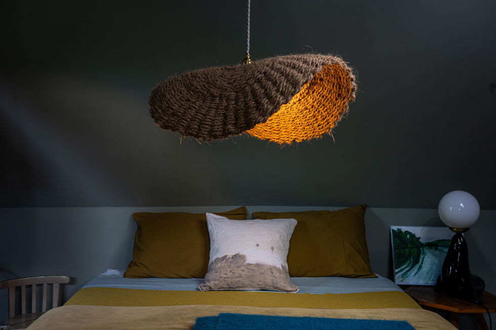 Les supensions de l'Atelier Bouillant sont fabriquées à la main en France, en fibre de coco naturel. Ce sont des objets qui prennent vie dans votre quotidien. La lumière diffusée devient douce et la matière brute se mèle à vos envies.